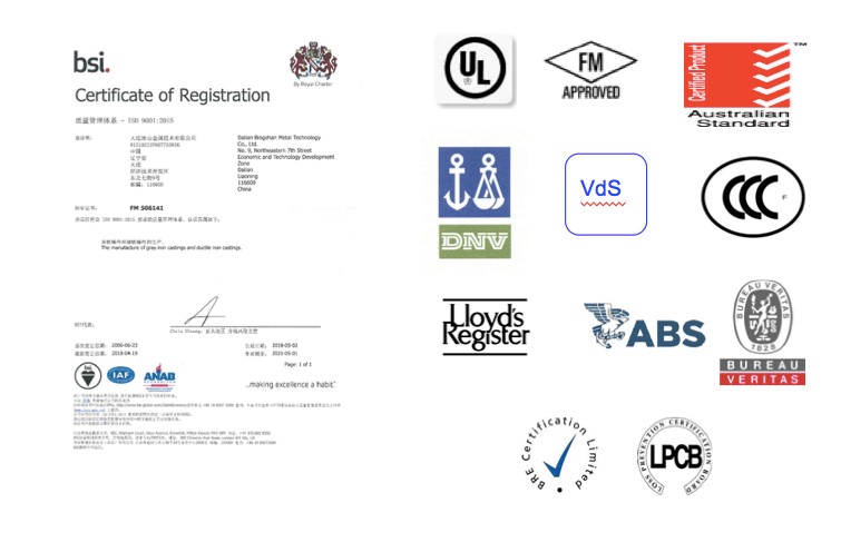 2006年6月,公司通過BSI認證公司的ISO9001:2000審核,獲得質量管理體系證書,2018年4月通過改版認證。公司管道系統連接件產品先后通過了FM、UL、ULC、LPCB、Vds、SAI、CCCF產品認證。